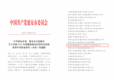 近日,中共延安市委、延安市政府印发的《关于表扬2025年度服务延安经济社会发展优秀中省驻延单位(企业)的通报》中,陕旅集团延安公司再次
